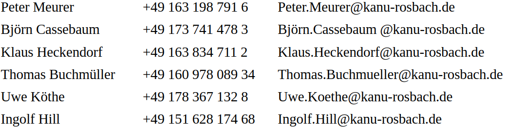 Kontaktadressen der Kanuabteilung TV-Rosbach: